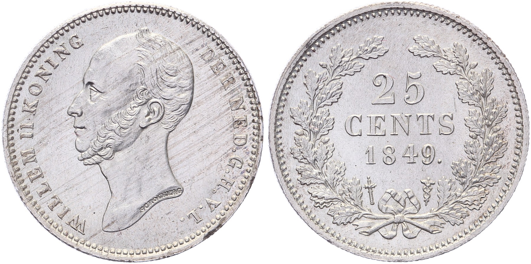 25 Cents 1849 mmt. zwaard Sch. 533 Prachtig / FDC