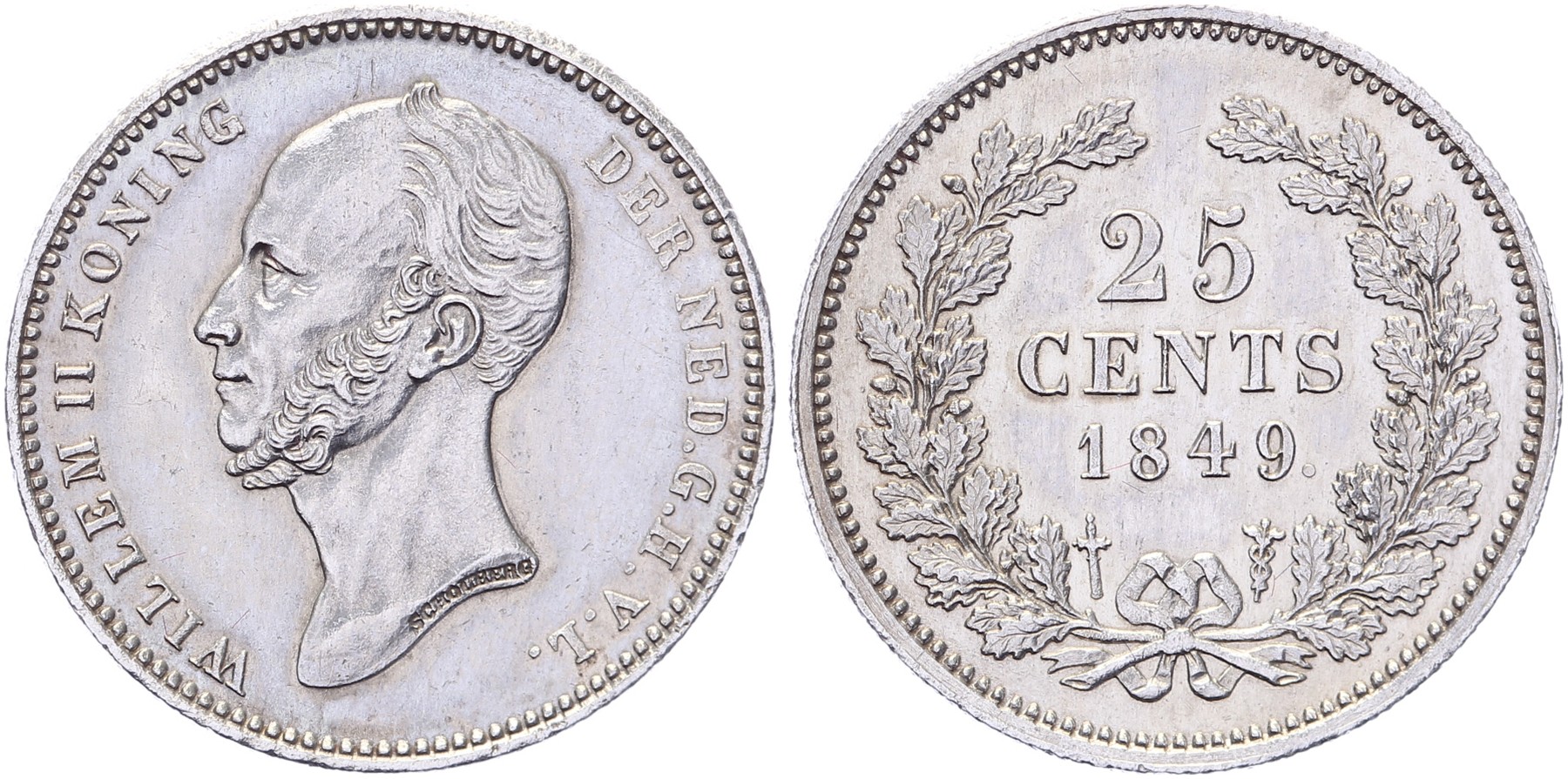 25 Cents 1849 mmt. zwaard Sch. 533 Prachtig