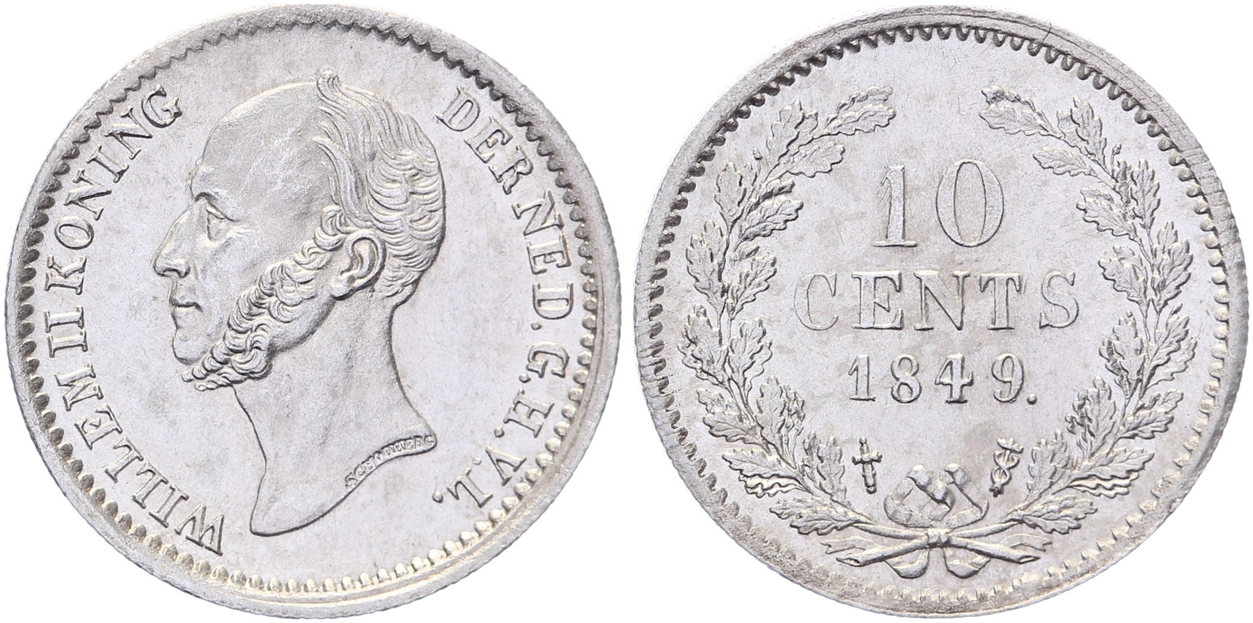 10 Cents 1849 mmt. zwaard Sch. 535. Punt achter jaartal Prachtig / FDC