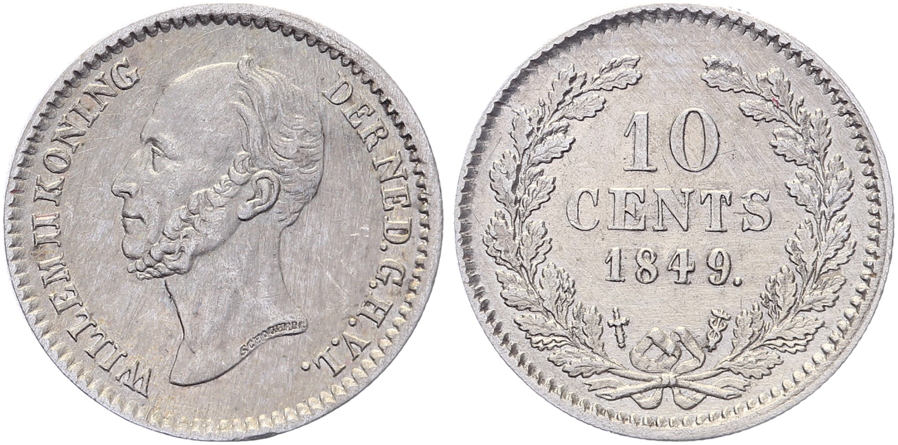 10 Cents 1849 mmt. zwaard Sch. 535. Punt achter jaartal Prachtig