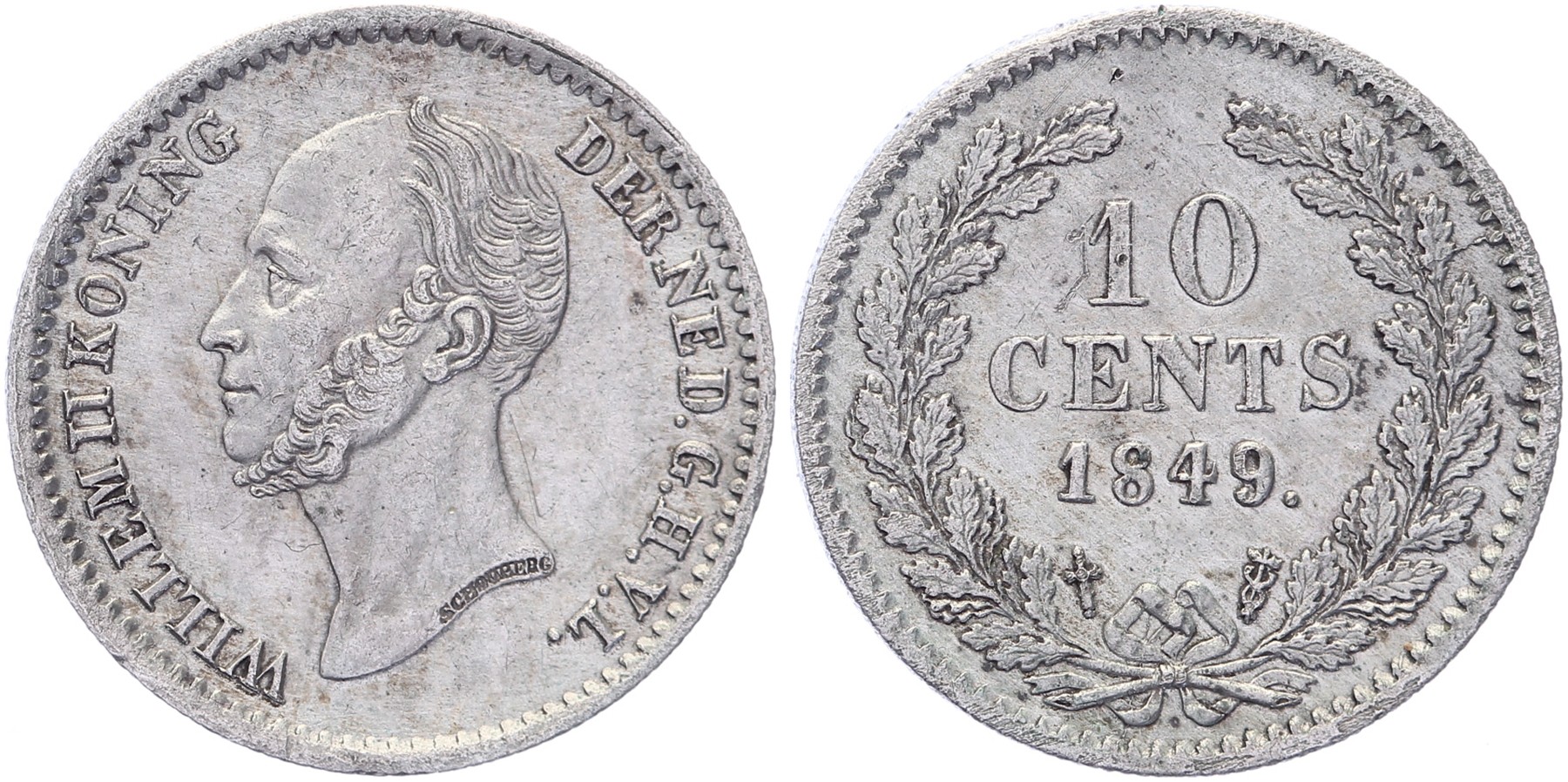 10 Cents 1849 mmt. zwaard Sch. 535. Punt achter jaartal Ruim zeer fraai