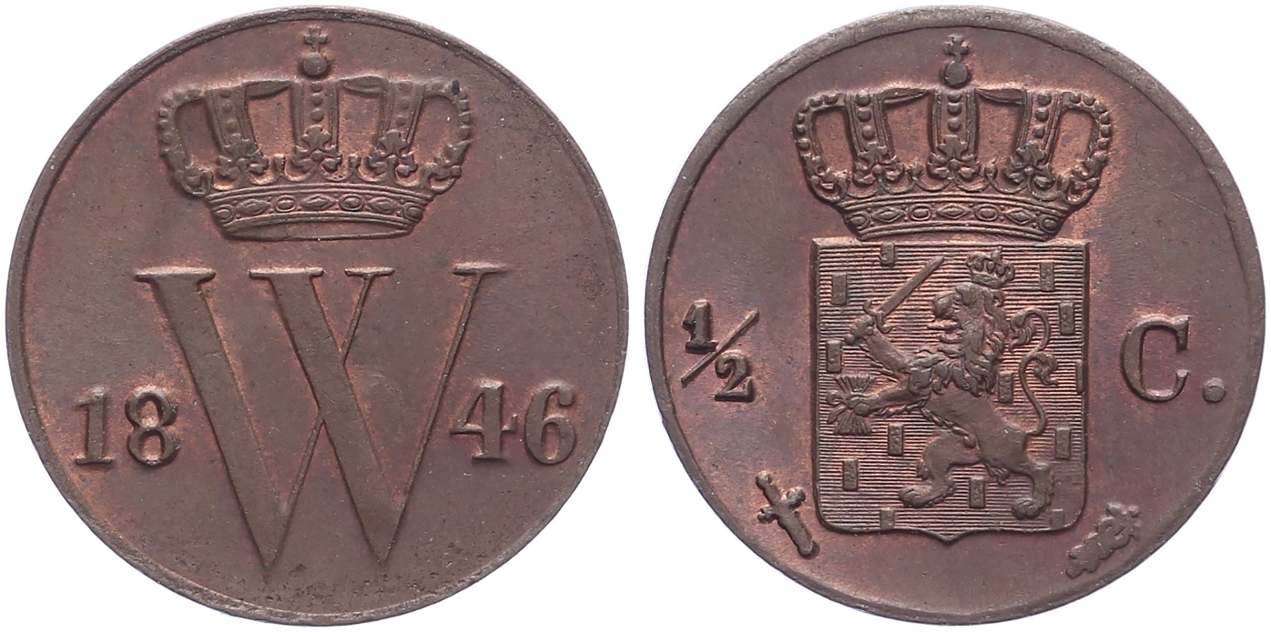 ½ Cent 1846 mmt. zwaard Sch. 540. Originele kleur Prachtig / FDC