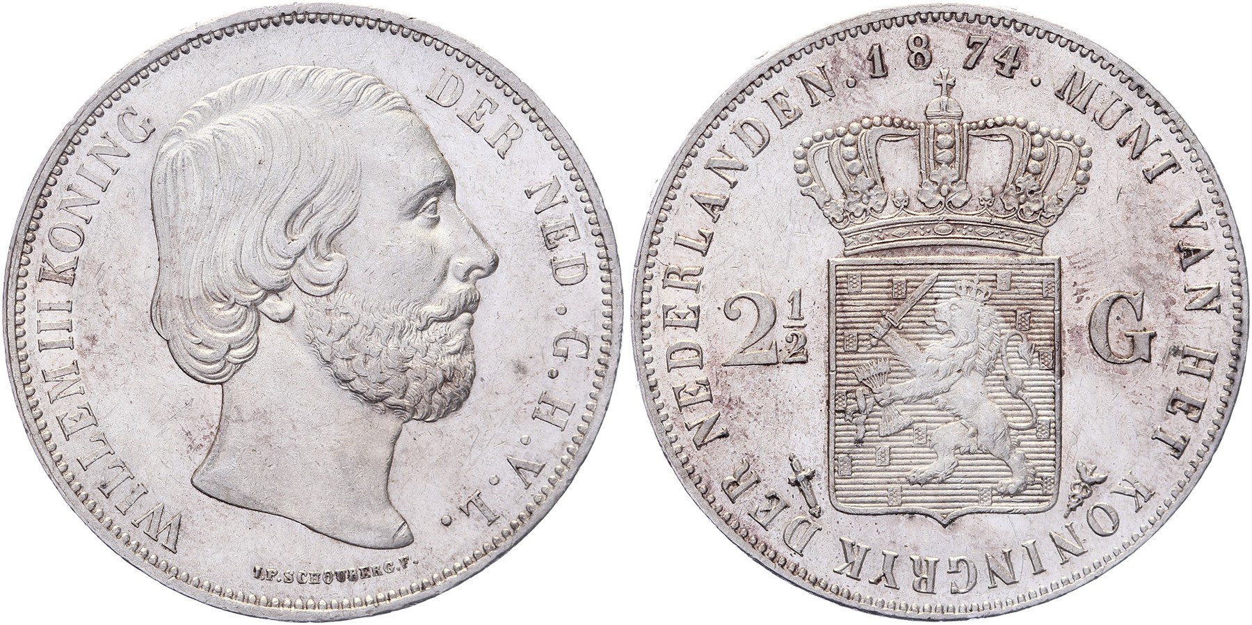 Rijksdaalder 1874 mmt. zwaard met klaverbladvormig uiteinde Sch. 602 Vrijwel prachtig