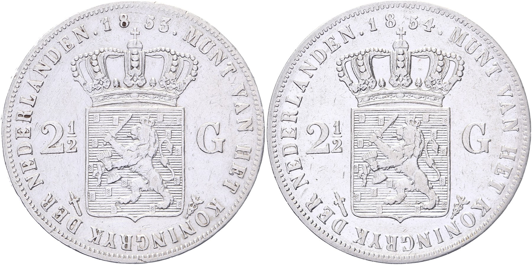 Lot (2) Rijksdaalder 1853 uit 1852 (?) en 1854 Sch. Sch. 579 en 580 Ruim fraai