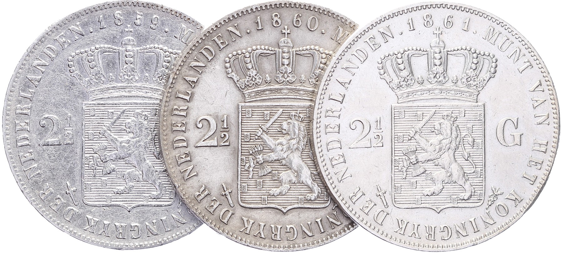 Lot (3) Rijksdaalder 1859, 1860 en 1861 Sch. 585, 586 en 587 Zeer fraai en beter