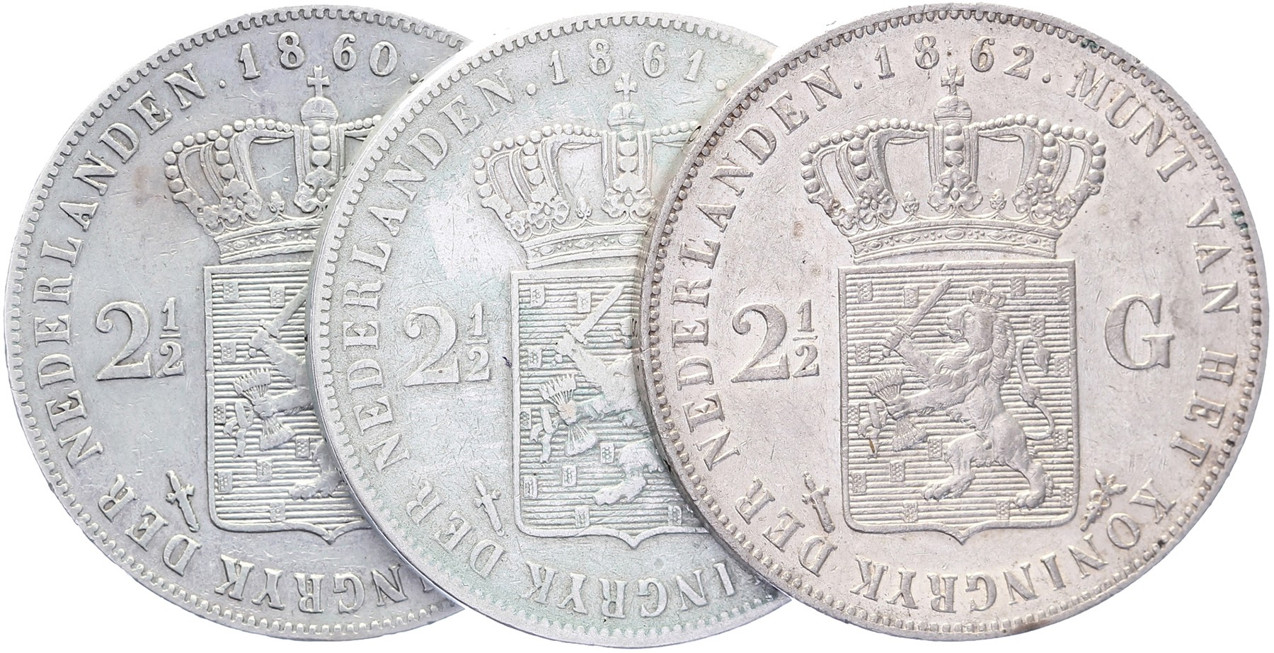 Lot (3) Rijksdaalder 1860, 1861 en 1862 Sch. 586, 587 en 588 Fraai / Zeer fraai