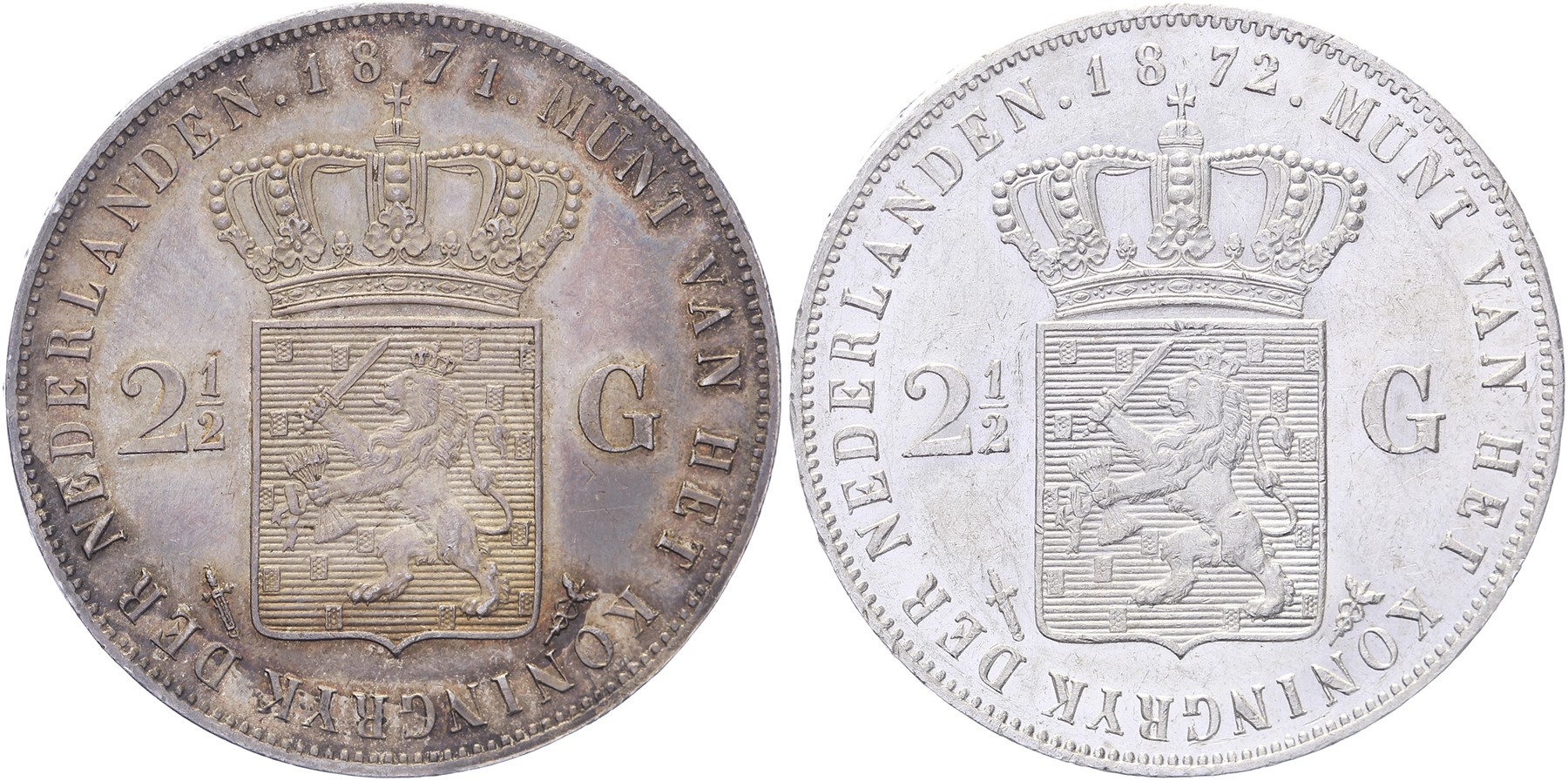 Lot (2) Rijksdaalder 1871 en 1872 Sch. 597 en 598 Ruim zfr. / Bijna pr.