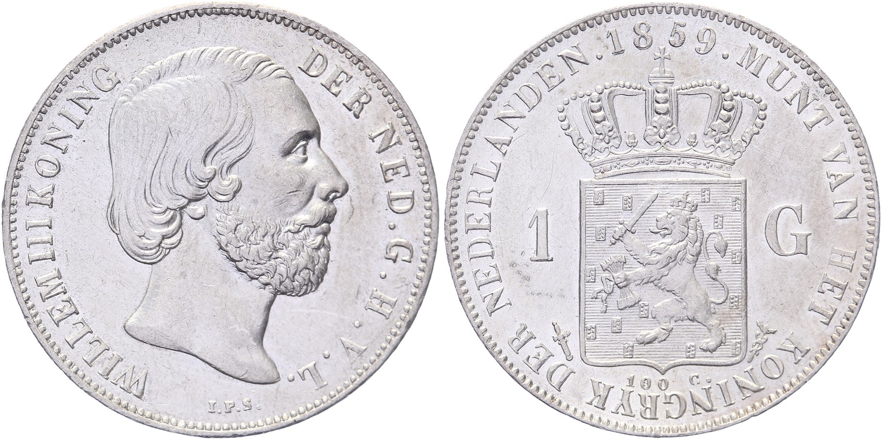 1 Gulden 1859 mmt. zwaard Sch. 612 Prachtig / FDC