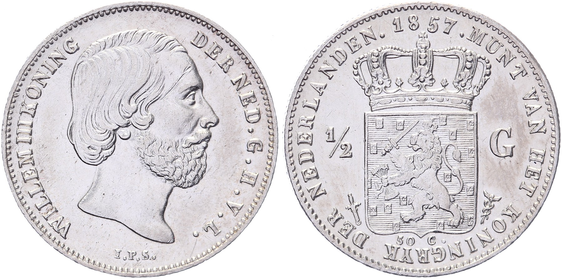 ½ Gulden 1857 mmt. zwaard Sch. 624 Prachtig