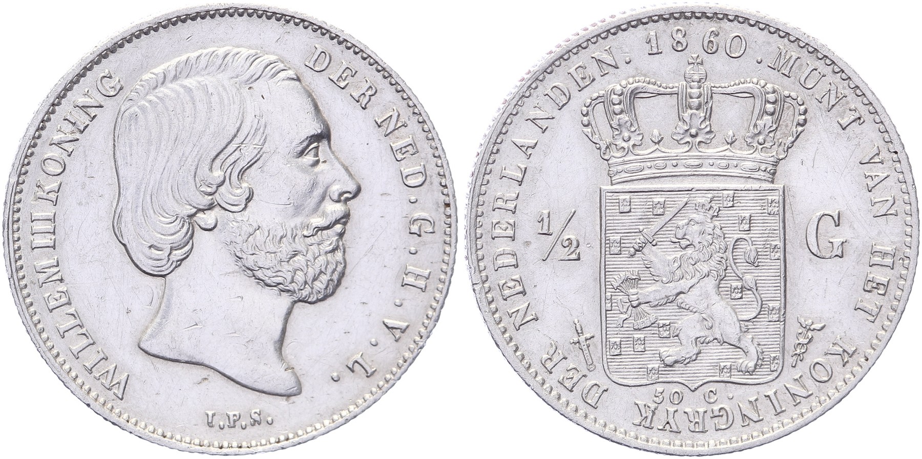 ½ Gulden 1860 mmt. zwaard Sch. 627 Prachtig / FDC