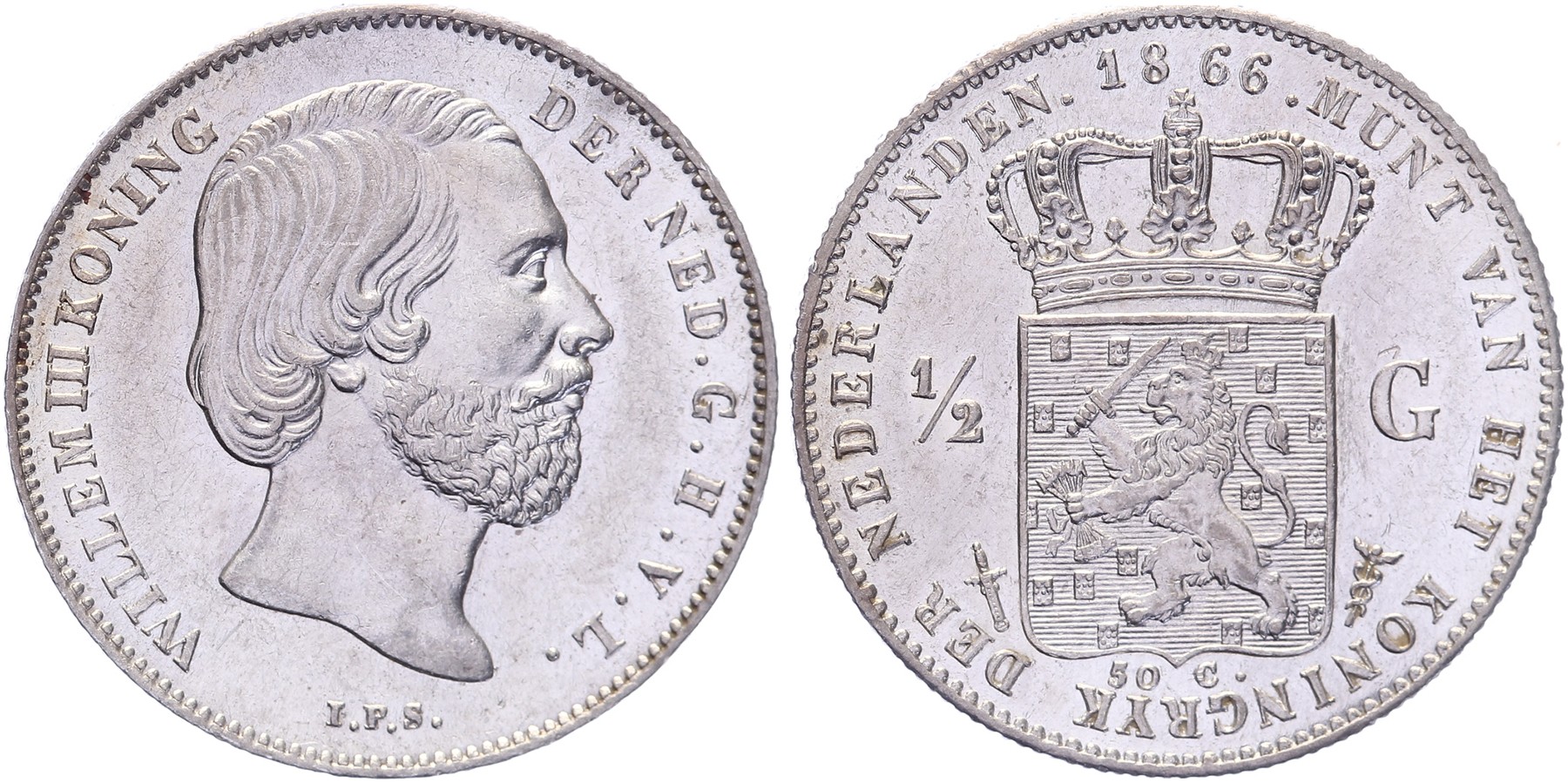 ½ Gulden 1866 mmt. zwaard Sch. 632. Mooie glans Prachtig / FDC