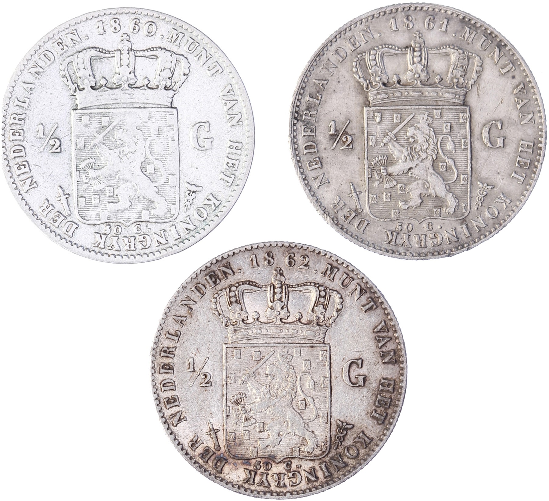 Lot (3) ½ Gulden 1860, 1861 en 1862 Sch. 627, 628 en 629 Zeer fraai