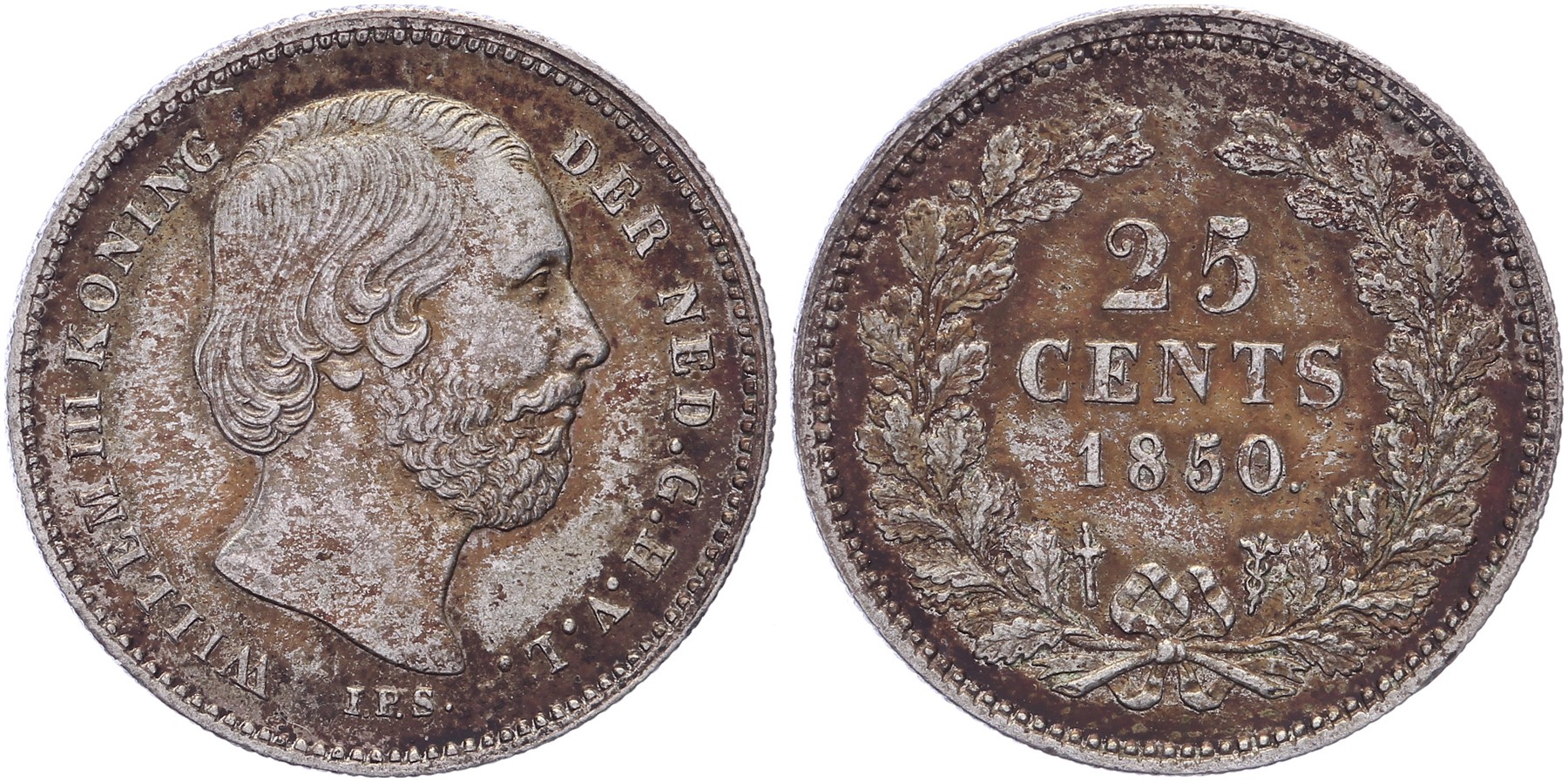 25 Cents 1850 mmt. zwaard Sch. 635. Mooi patina Ruim prachtig