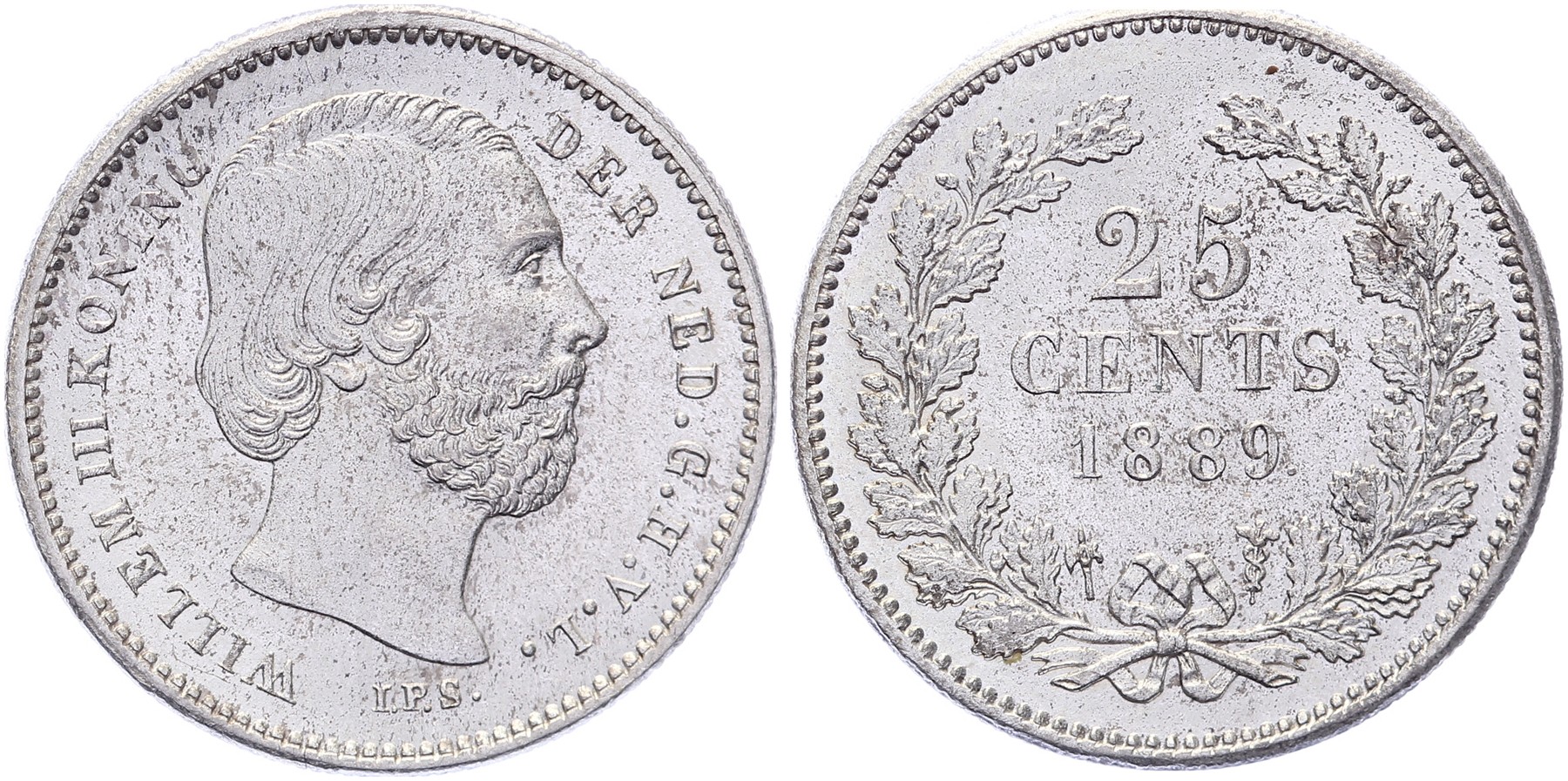 25 Cents 1889 mmt. bijl met ster Sch. 638 Prachtig