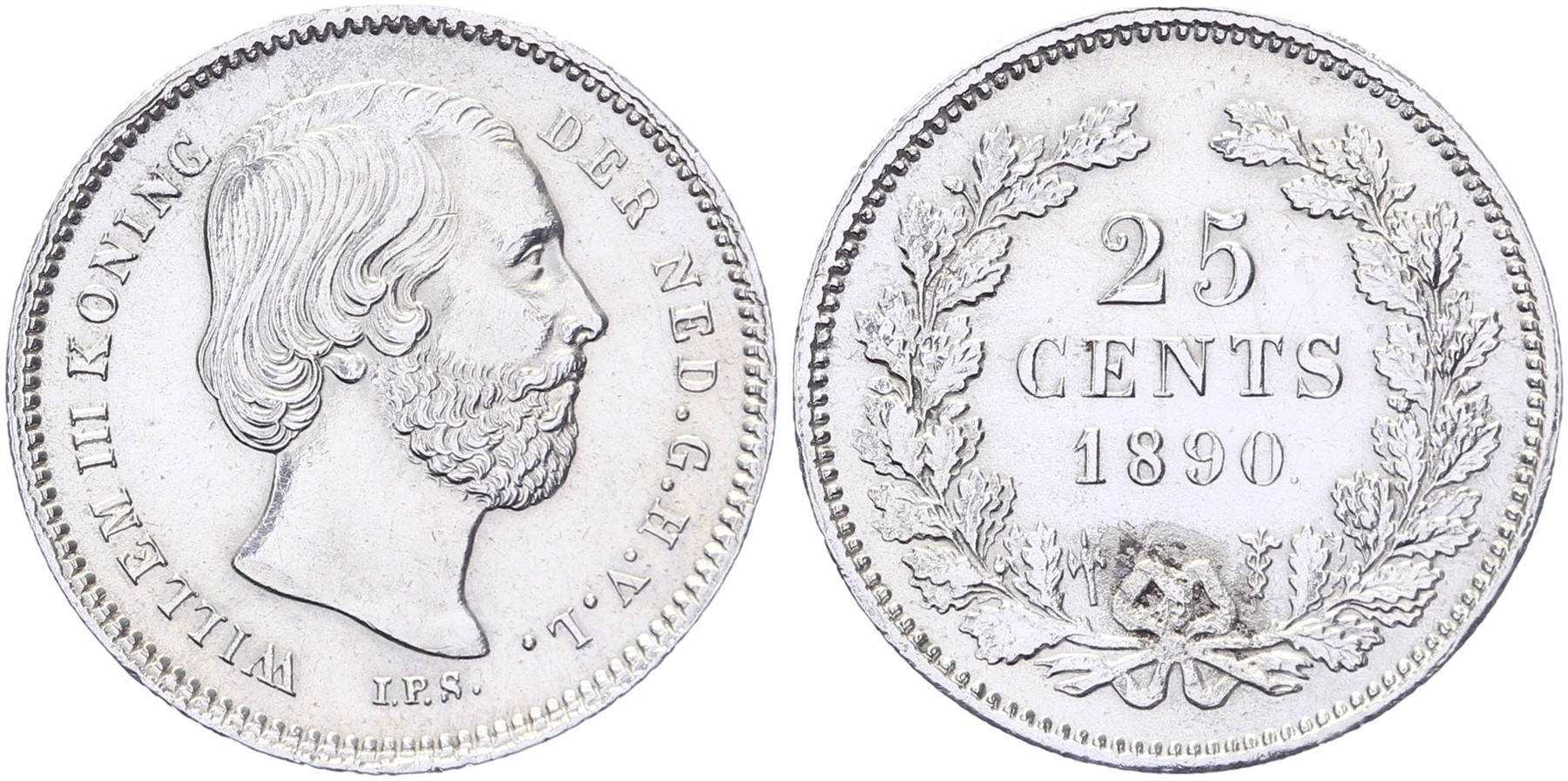 25 Cents 1890 mmt. hellebaard Sch. 639. Punt achter jaartal. Vlekje keerzijde Prachtig