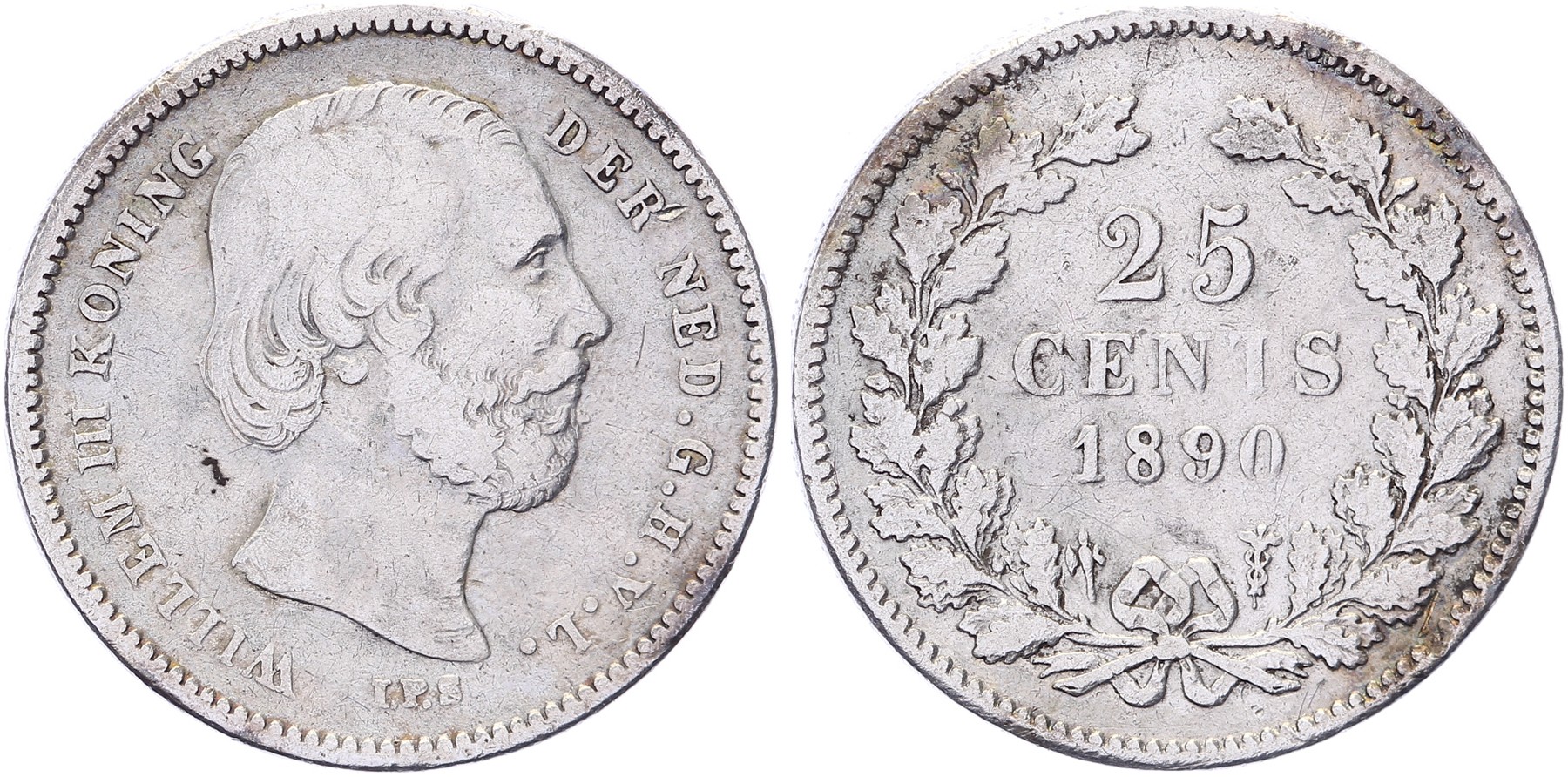 25 Cents 1890 mmt. hellebaard Sch. 639a. Geen punt achter jaartal Fraai