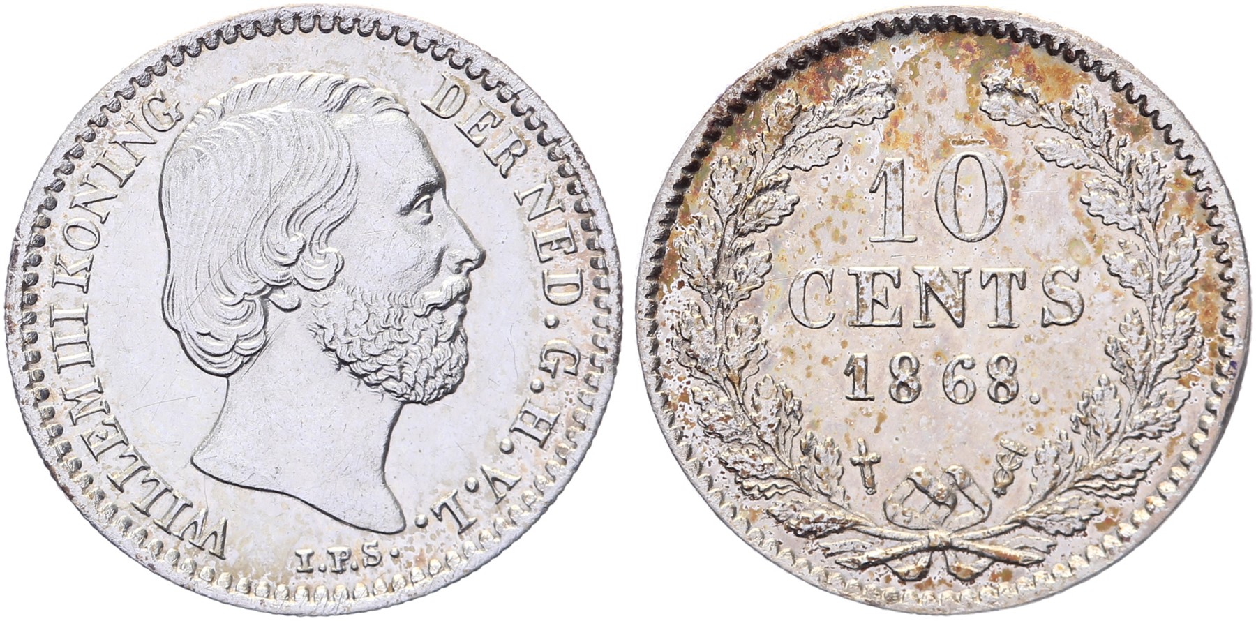 10 Cents 1868 mmt. zwaard Sch. 648. Mooie kleur Vrijwel FDC