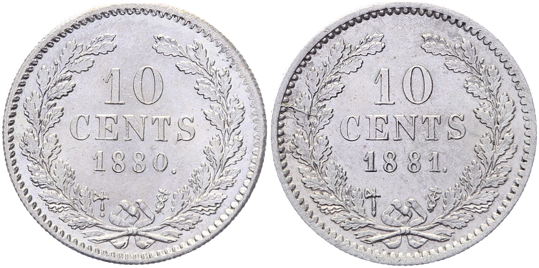 Lot (2) 10 Cents 1880 en 1881 Sch. 658 en 659 Prachtig / FDC