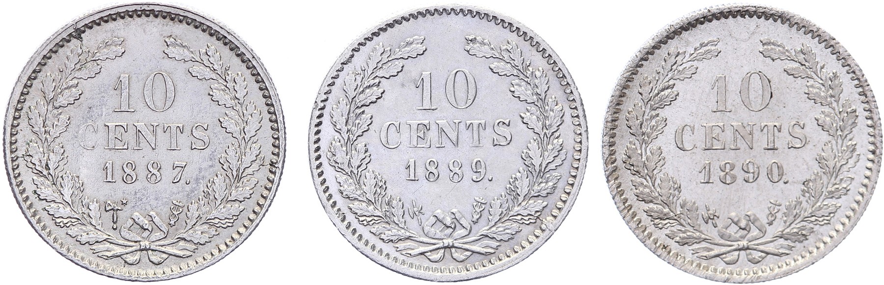 Lot (3) 10 Cents 1887, 1889 en 1890 Sch. 663, 664 en 665 Prachtig / FDC