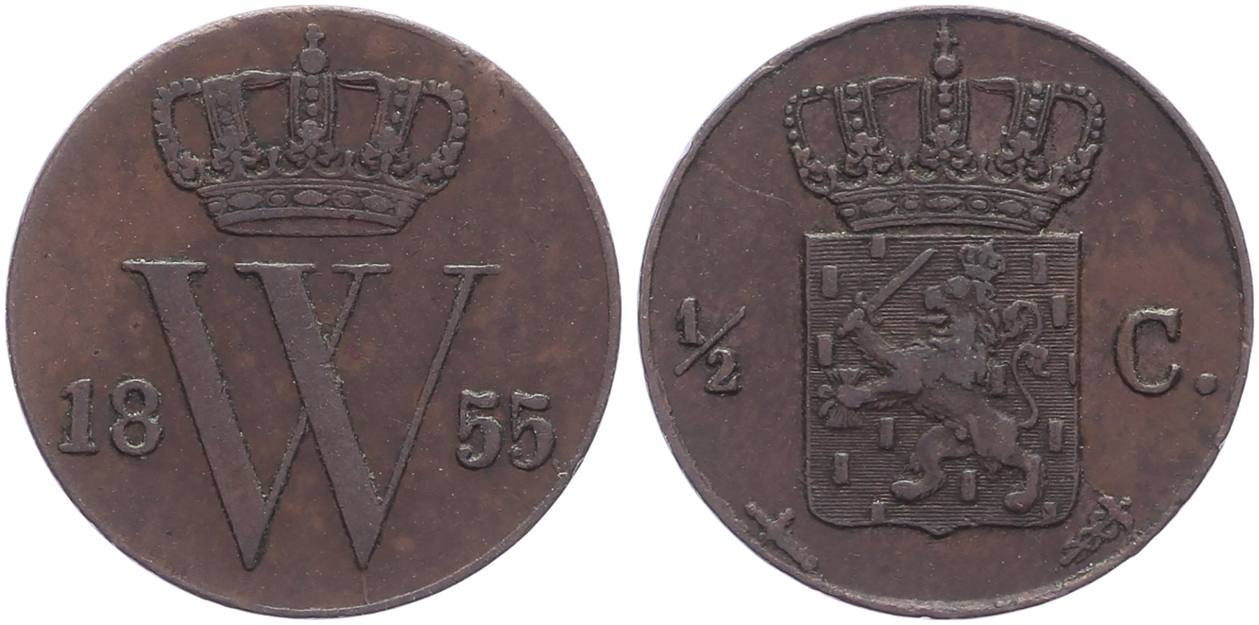 ½ Cent 1855 mmt. zwaard Sch. 708 Zeer fraai