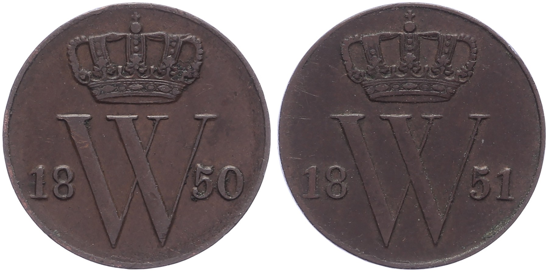 Lot (2) ½ Cent 1850 en 1851 Sch. 703 en 704 Ruim zeer fraai