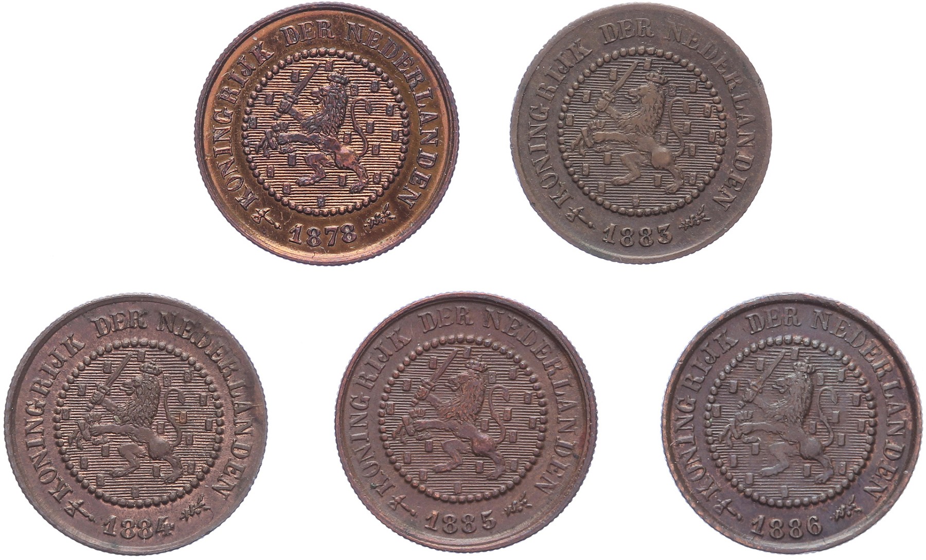 Lot (5) ½ Cent 1878, 1883, 1884, 1885 en 1886 Sch. 724 t/m 728 Ruim zfr. en beter