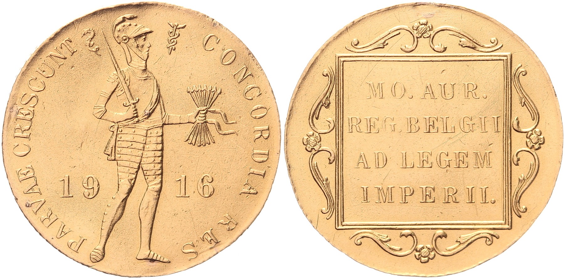 Dukaat 1916 mmt. zeepaardje Sch. 769. Kleine randoneffenheid Ruim zeer fraai