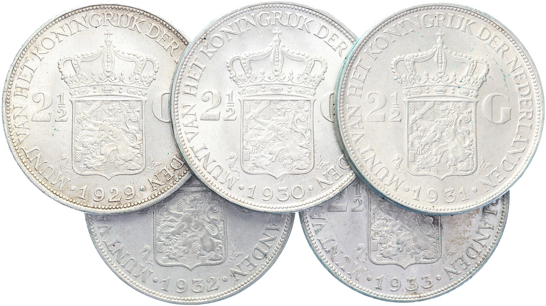 Lot (5) Rijksdaalder 1929 t/m 1933 Sch. 784, 785, 786, 787 en 788 Zeer fraai en beter