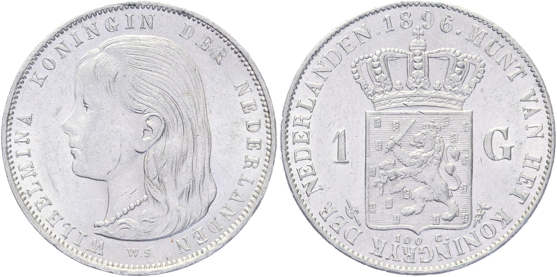 1 Gulden 1896 mmt. hellebaard Sch. 796. Krasje over wang Ruim prachtig