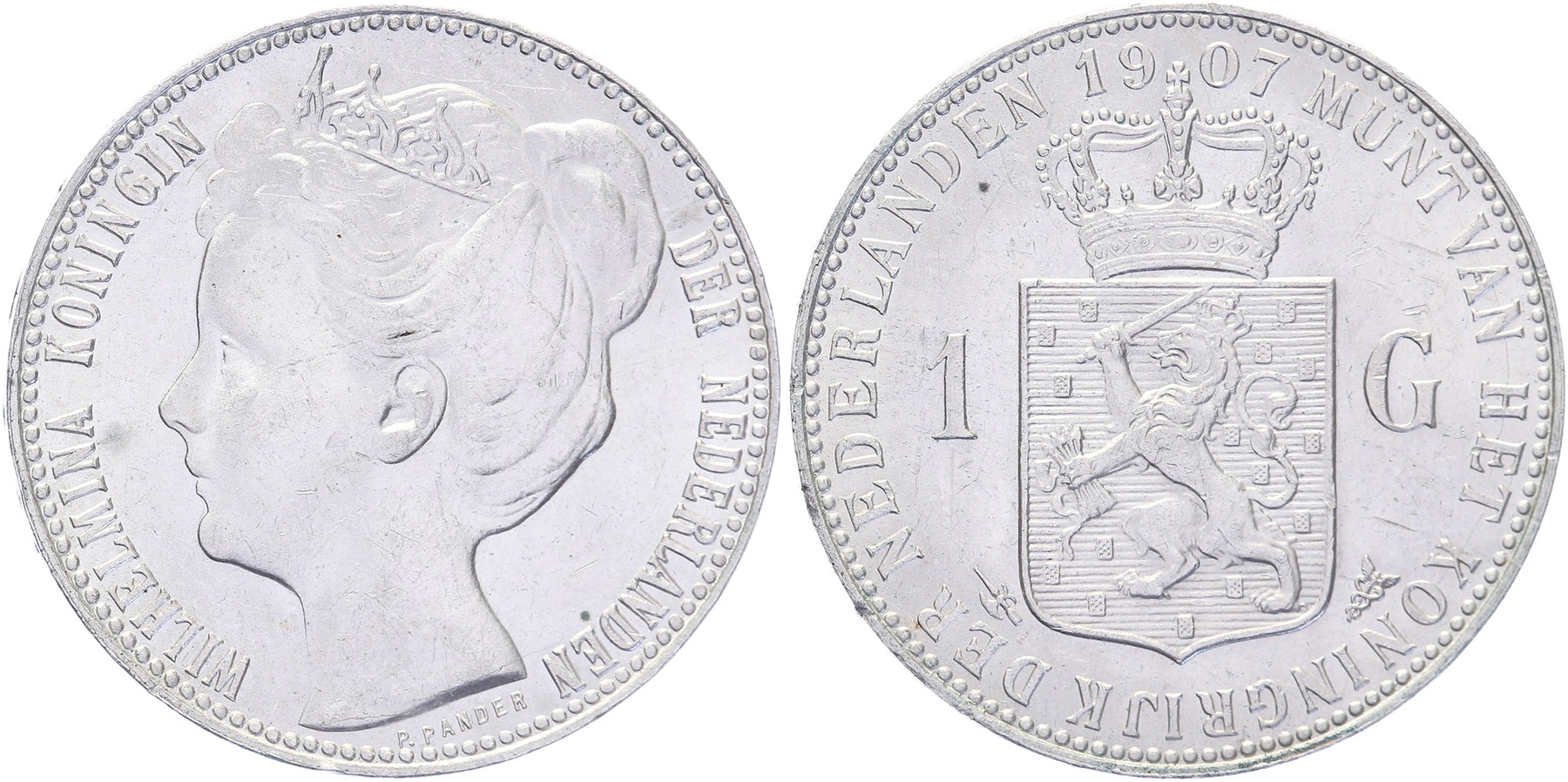 1 Gulden 1907 mmt. hellebaard Sch. 809. Mooie glans Prachtig / FDC