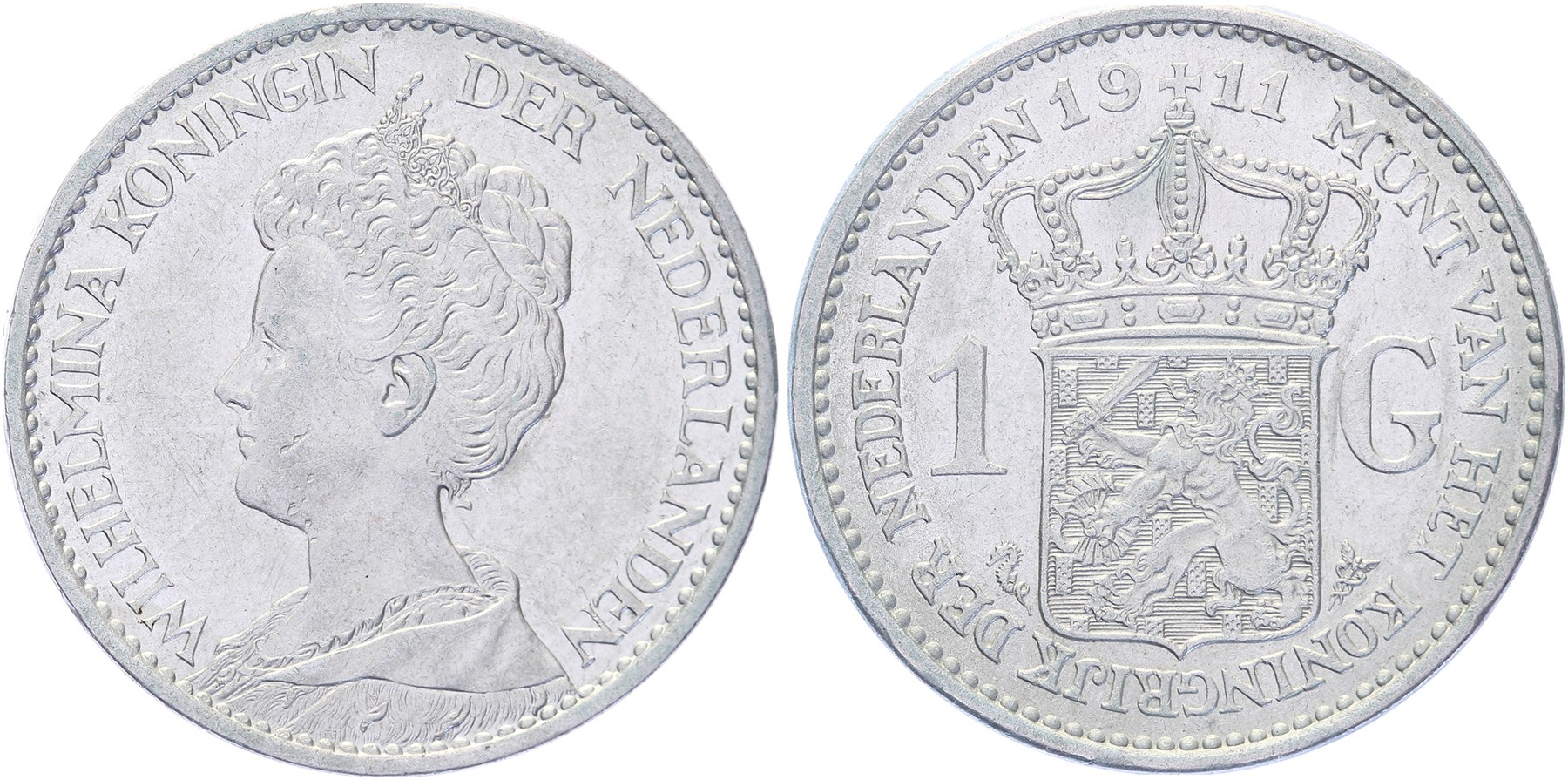 1 Gulden 1911 mmt. zeepaardje Sch. 813 Vrijwel prachtig