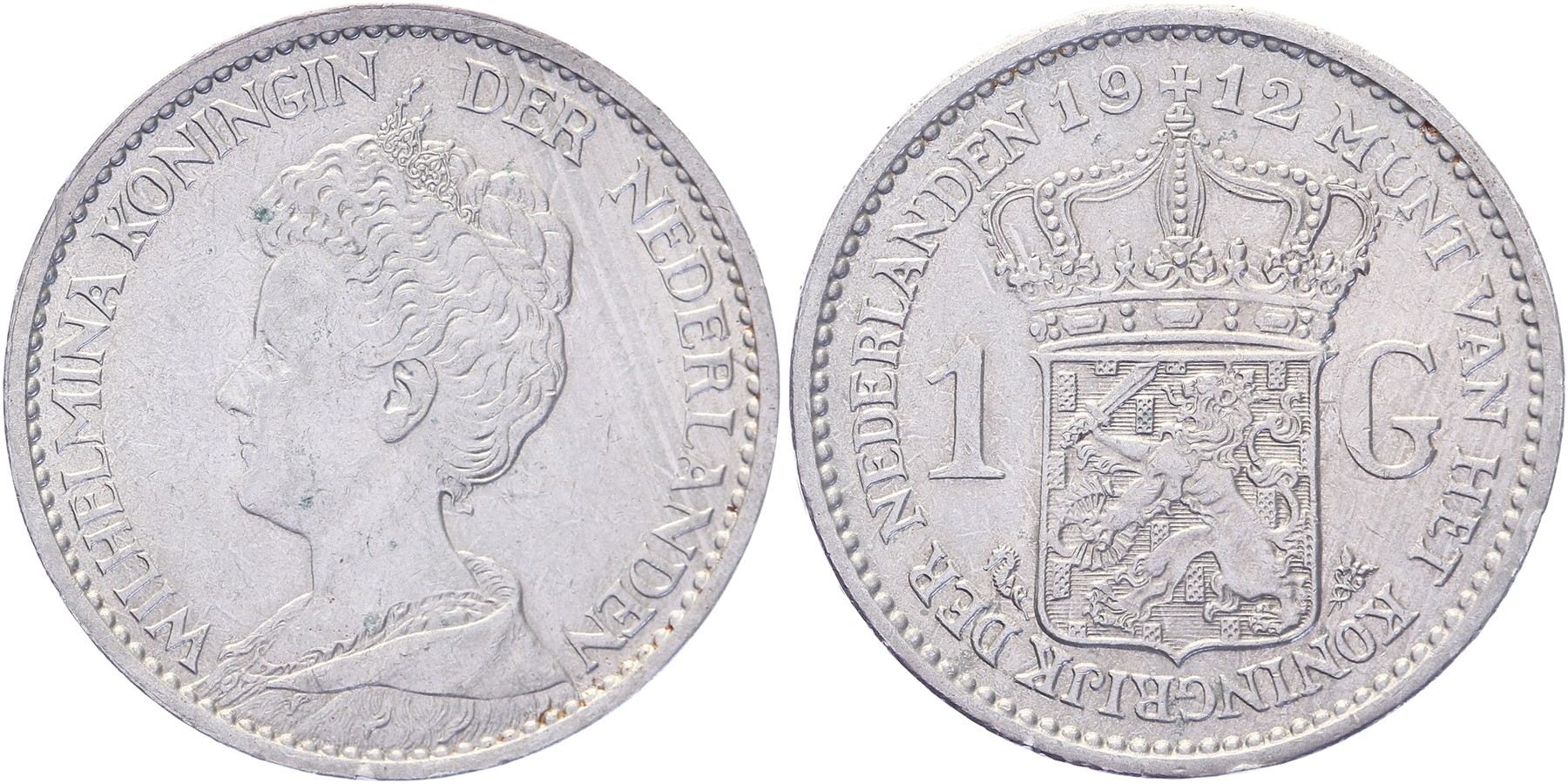 1 Gulden 1912 mmt. zeepaardje Sch. 814 Prachtig