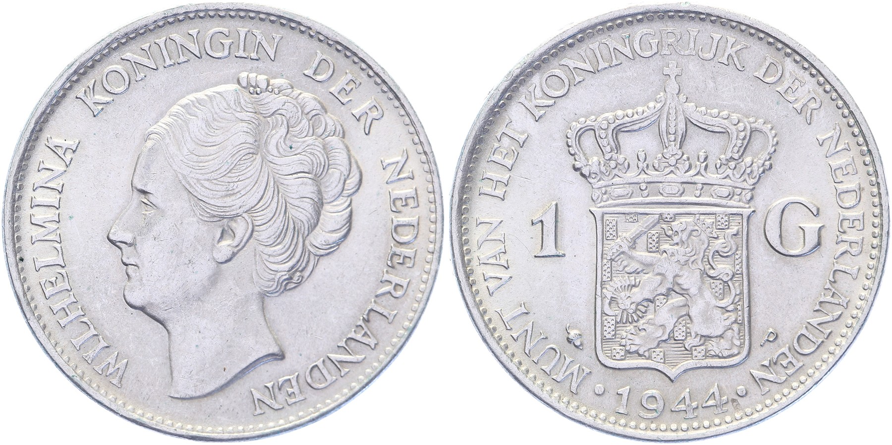 1 Gulden 1944P mmt. eikel Sch. 1055a. Doorlopend omschrift Prachtig / FDC