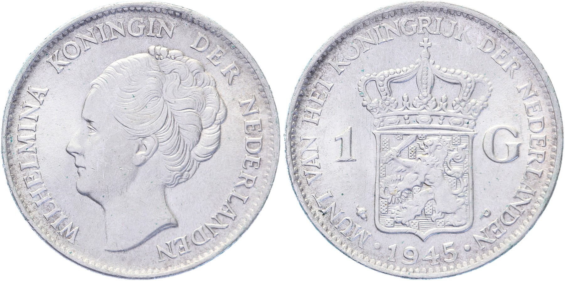 1 Gulden 1945P mmt. eikel Sch. 1056 Prachtig / FDC