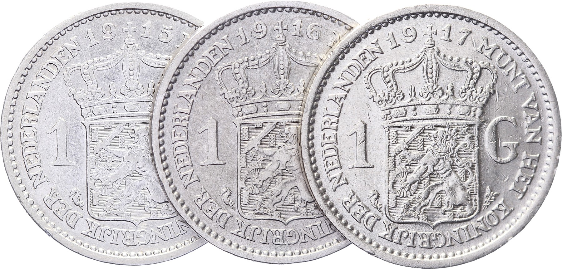 Lot (3) 1 Gulden 1915, 1916 en 1917 Sch.817, 818 en 819 Zeer fraai