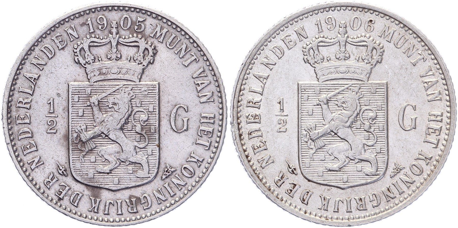 Lot (2) ½ Gulden 1905 en 1906 Sch. 832 en 833 Zeer fraai en beter