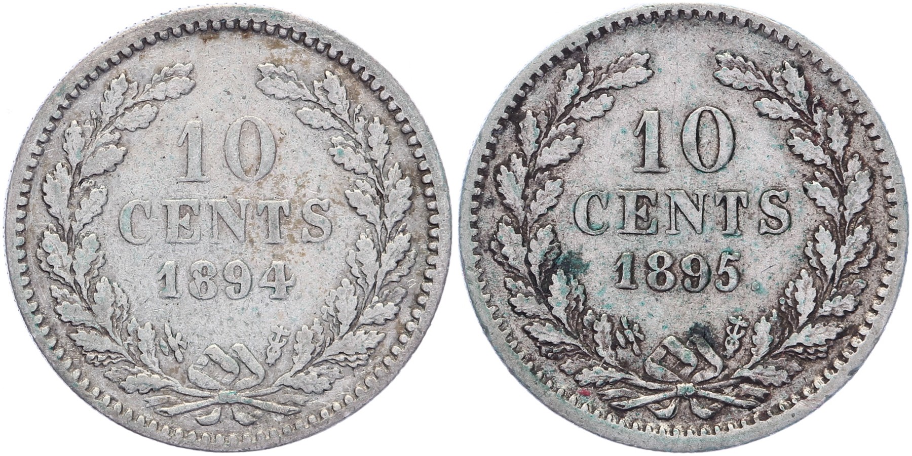 Lot (2) 10 Cents 1894 en 1895 Sch. 879 en 880 Zeer fraai