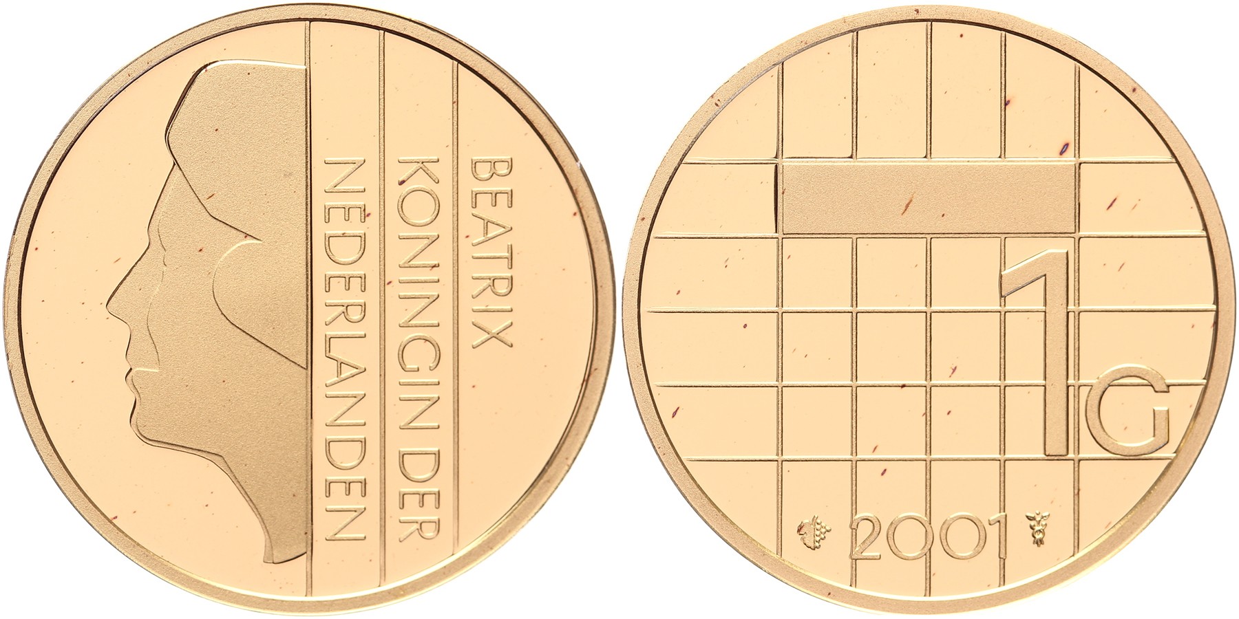 Gouden gulden 2001, zonder randschrift. Oplage ca. 500 stuks. Zeldzaam! Proof.