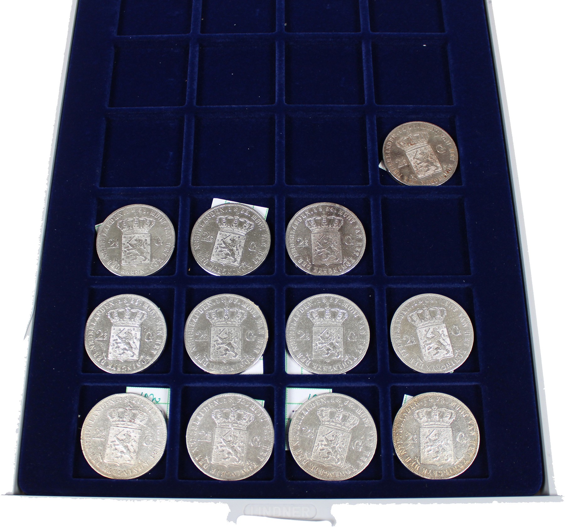Lindner-cassette met 12 stuks zilveren rijksdaalders van Willem II 1847 en Willem III 1851, 1852, 1854, 1855, 1857, 1867, 1869, 1870, 1872, 1873 en 1874. Overwegend zeer fraai