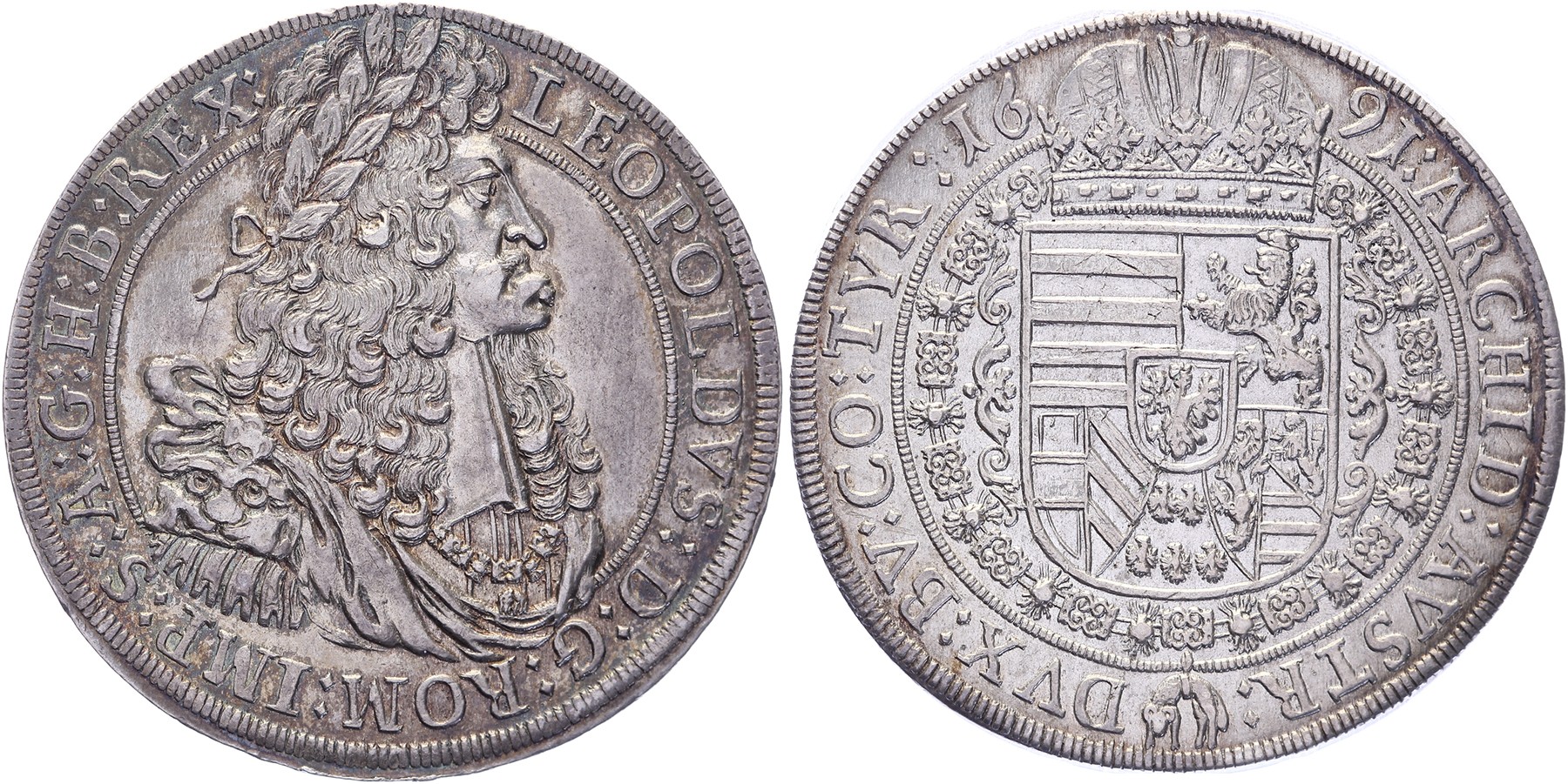 Taler 1691 Hall. Dav. 3243; KM 1303.2. Vorzüglich / Stempelglanz.