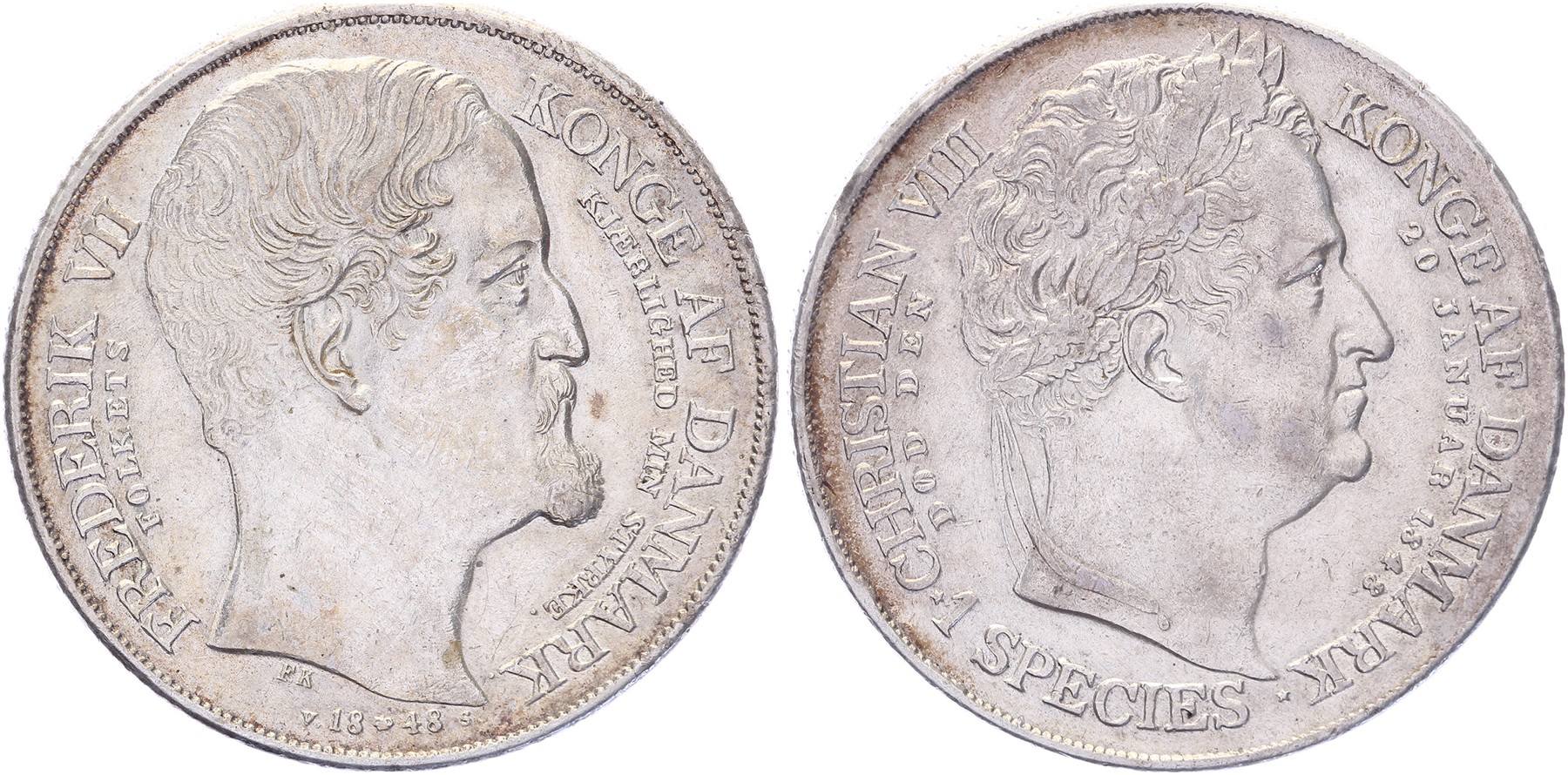 Speciedaler 1848. Death Christian VIII and Accession Frederik VII. KM 742. Nice VF.