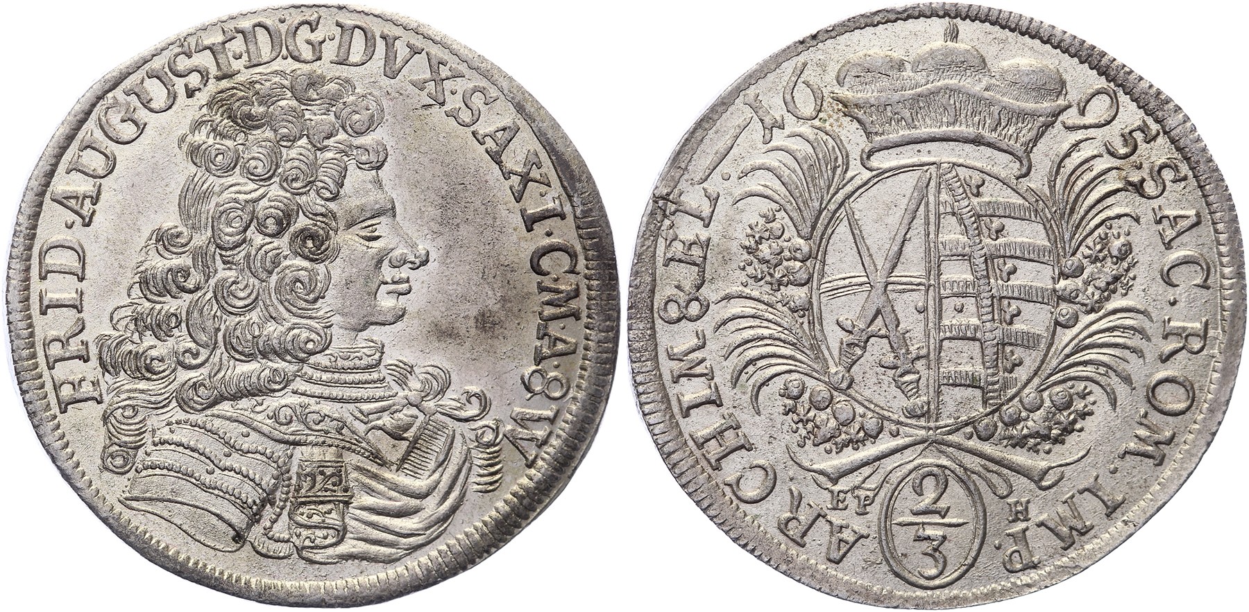 2/3 Taler 1695EPH Leipzig. Dav. 818; KM 655. Vorzüglich / Stempelglanz.