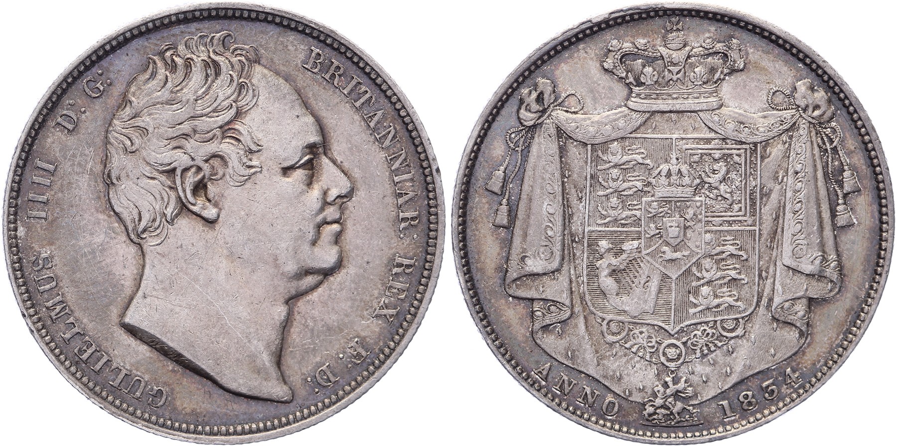 Halfcrown 1834, w.w. in script. S.3834; KM 714.2. VF / EF.