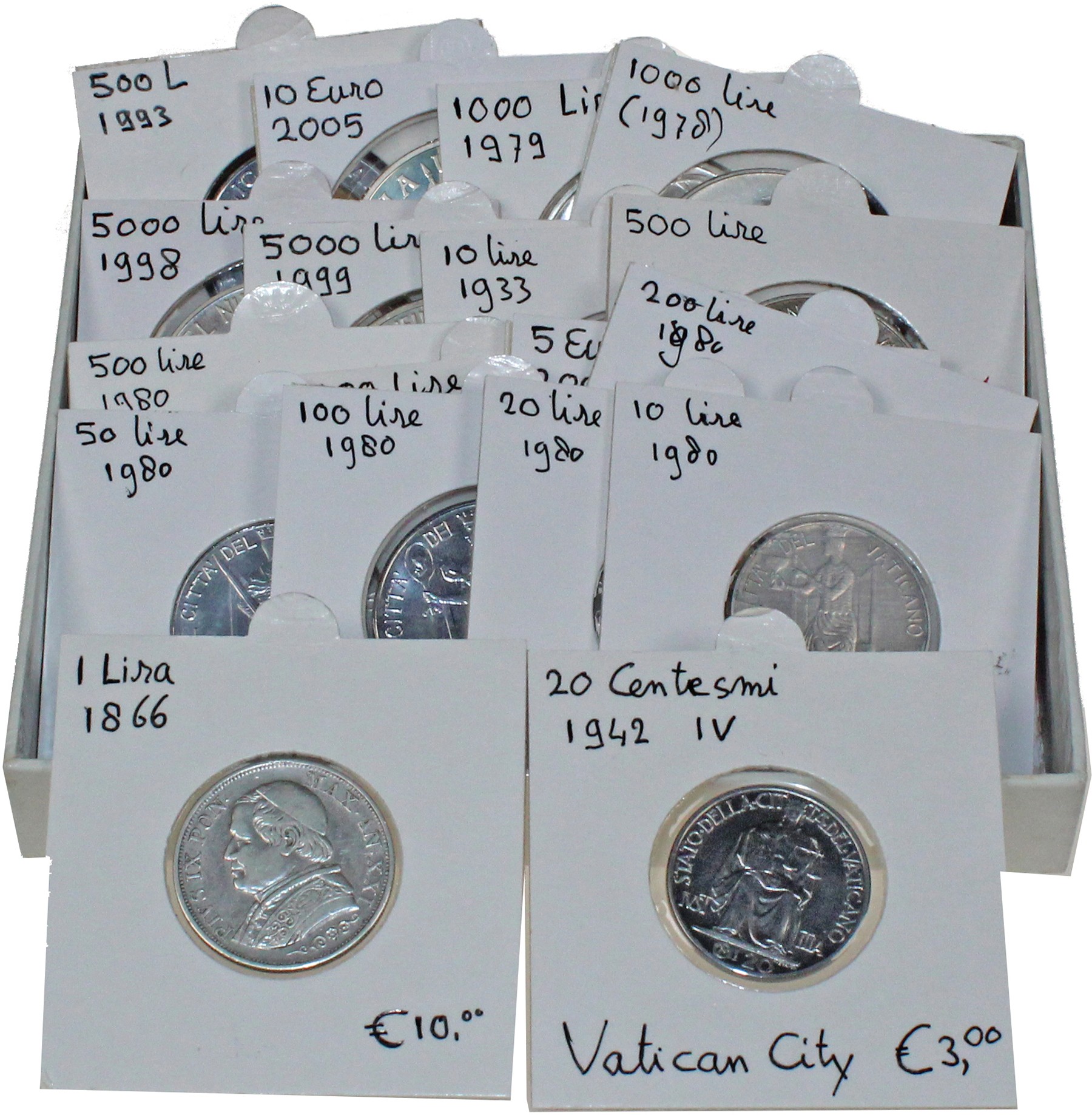 Doosje met 18 stuks San Marino en Vaticaan. Ook zilver.