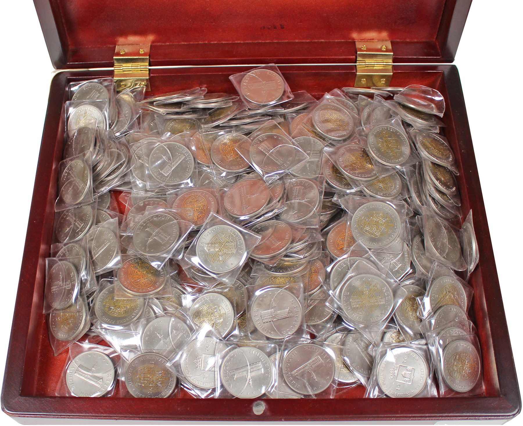 Doosje (3,29 kg.) met 253 x kopernikkelen Florijn 1976 Numismat. Kring Hoogeveen.