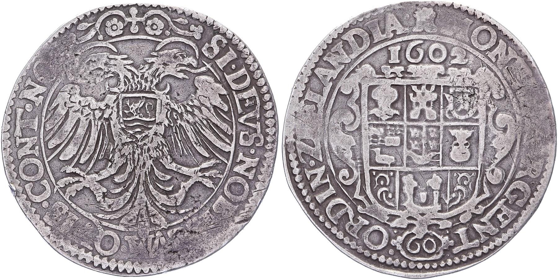 Arendsdaalder van 60 groot 1602. Delm. 1071; CNM 2.49.61; HPM 55. Bijna zeer fraai.