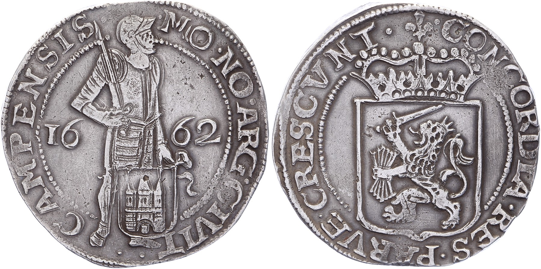 Zilveren dukaat 1662. Delm. 992; CNM 2.30.49; HPM 37. Bijna zeer fraai.