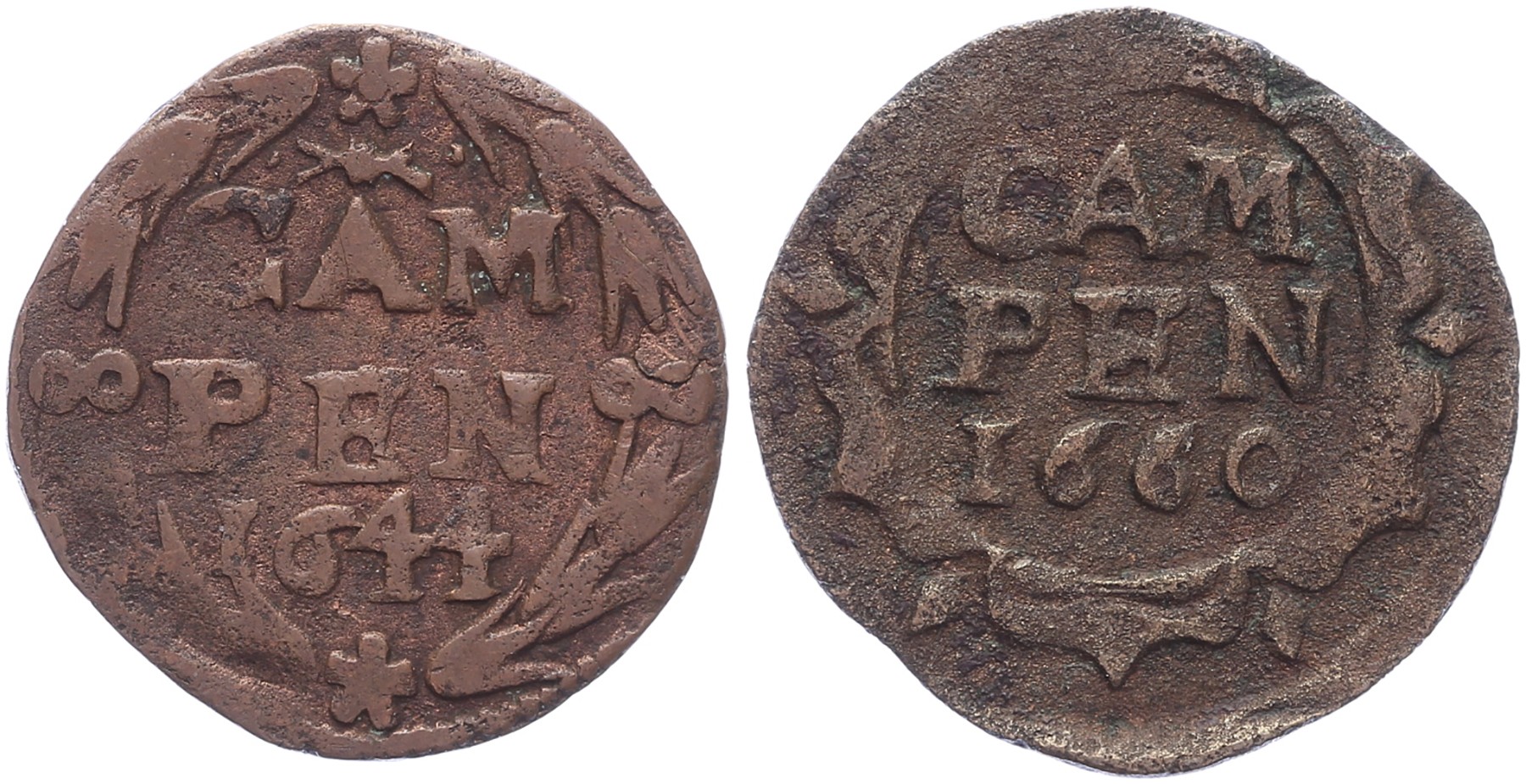Lot (2) Duit 1644 en 1660. PW. 7203 en 7205; CNM 2.30.80 en 2.30.82. Fraai / Zeer fraai.
