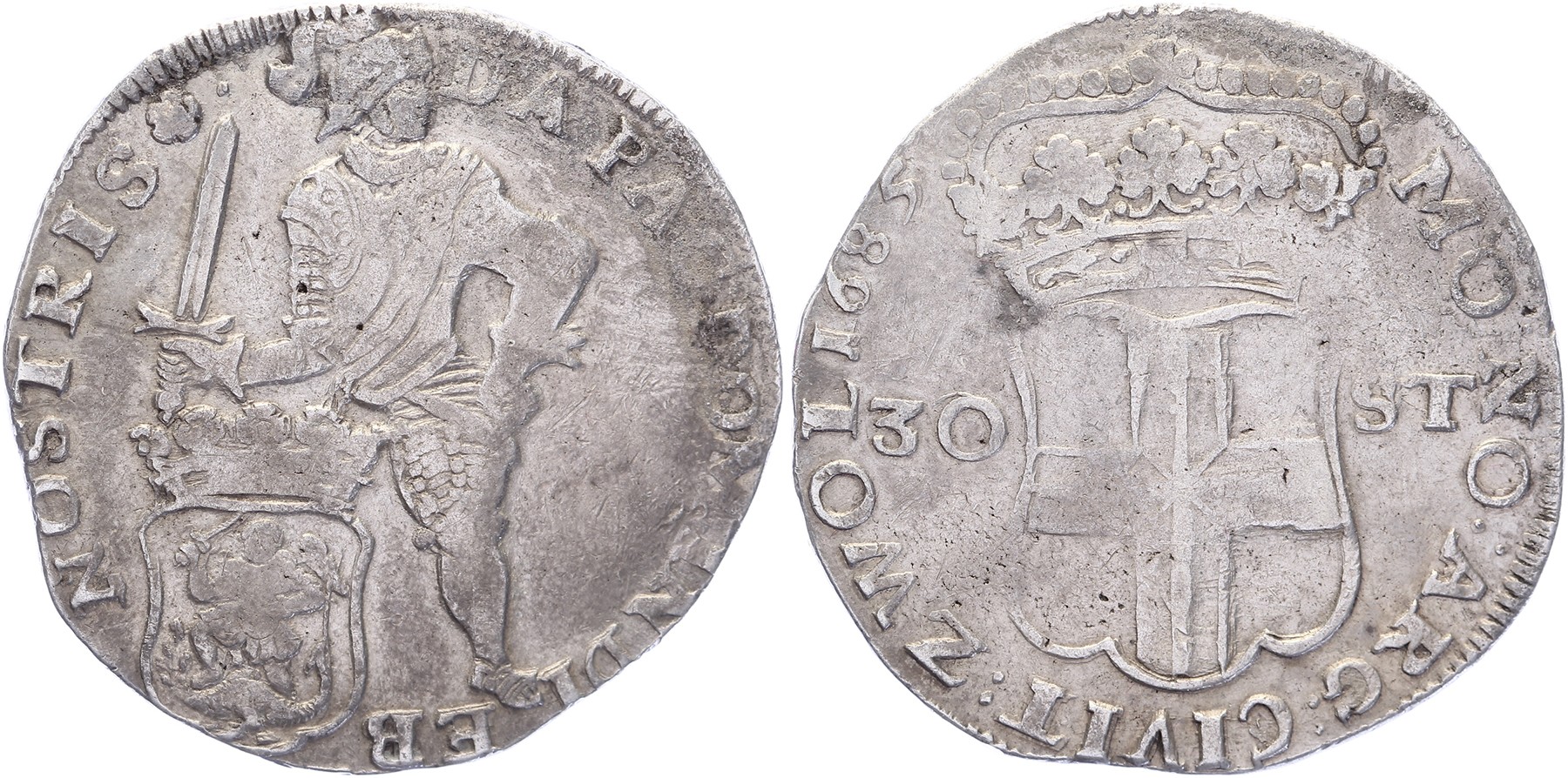Daalder van 30 stuiver 1685. Delm. 1095; CNM 2.52.80; HPM 47. Ruim fraai.