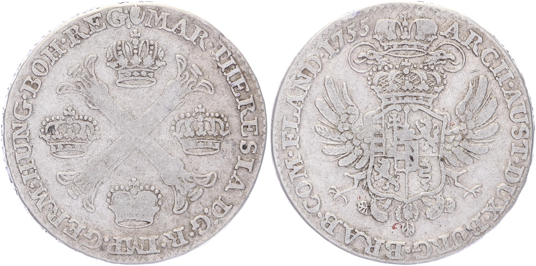 ½ Kronendaalder 1755 Antwerpen. Delm. 389; Vanhoudt 829. RR. Zeer fraai.